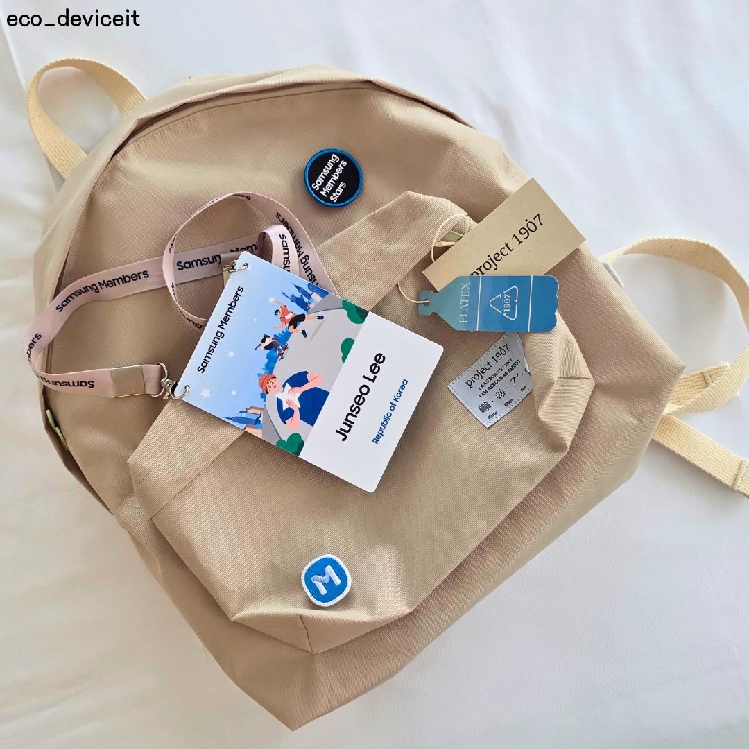 그럼 이제 언팩 키트를 열어보며 구성품부터 살펴보도록 할게요!! 이 백팩도 친환경을 고려하여 만들어진 제품이라고 해요 ㅎㅎ