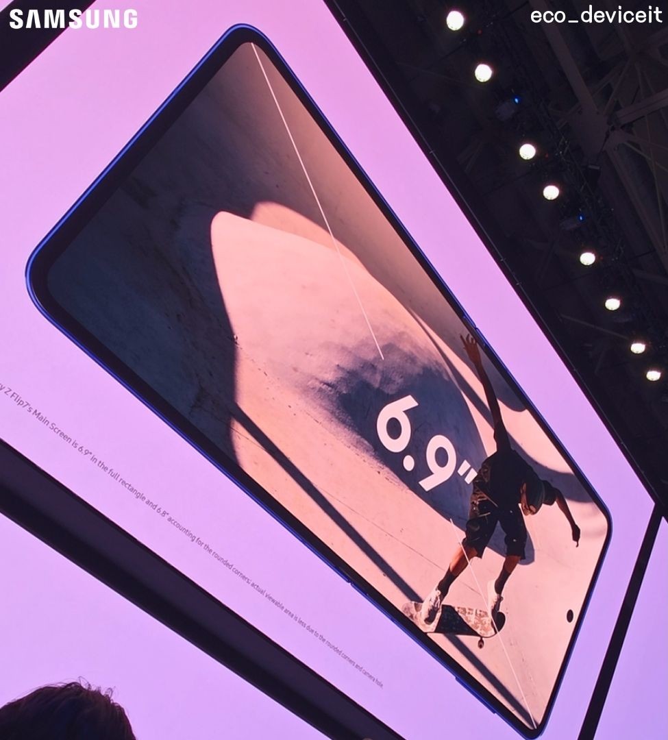갤럭시 Z 플립7의 메인 디스플레이는 6.9인치로 갤러시 바형 스마트폰 사상 가장 큰 대화면을 제공할 것으로 보입니다.