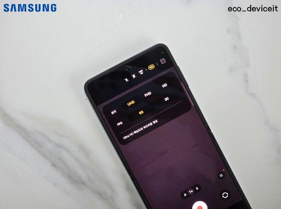 갤럭시 Z 플립7은 최대 4K 60fps 동영상 촬영이 가능합니다.