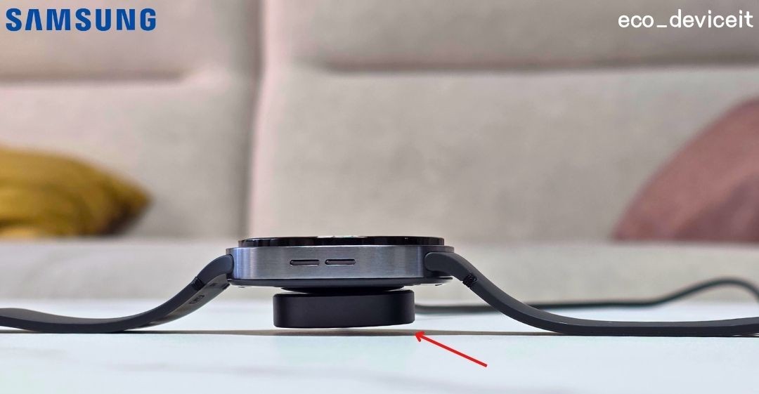 갤럭시 워치8 시리즈가 스트랩이 굉장히 좋습니다. 그러나 다이내믹 러그 시스템으로 인하여 충전할 때, 위 사진과 같이 붕 띄워서 충전해야 한다는게 아쉬웠습니다.