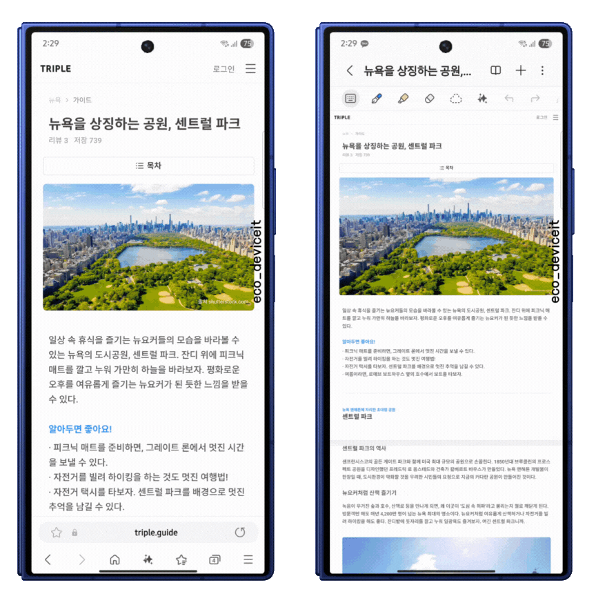 위와 같이 삼성 인터넷의 자료를 요약 및 복사를 통해, 삼성노트에 드래그 앤 드롭으로 복사할 수 있습니다!!