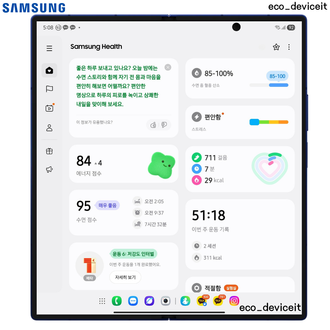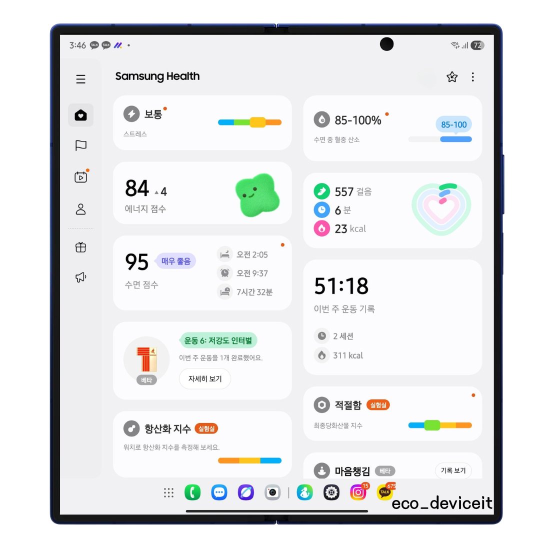 갤럭시 Z 폴드7의 8인치 대화면 덕분에, 한 화면에서 다양한 헬스 인사이트를 한눈에 쏙쏙 확인할 수 있다는 게 정말 큰 장점입니다!!