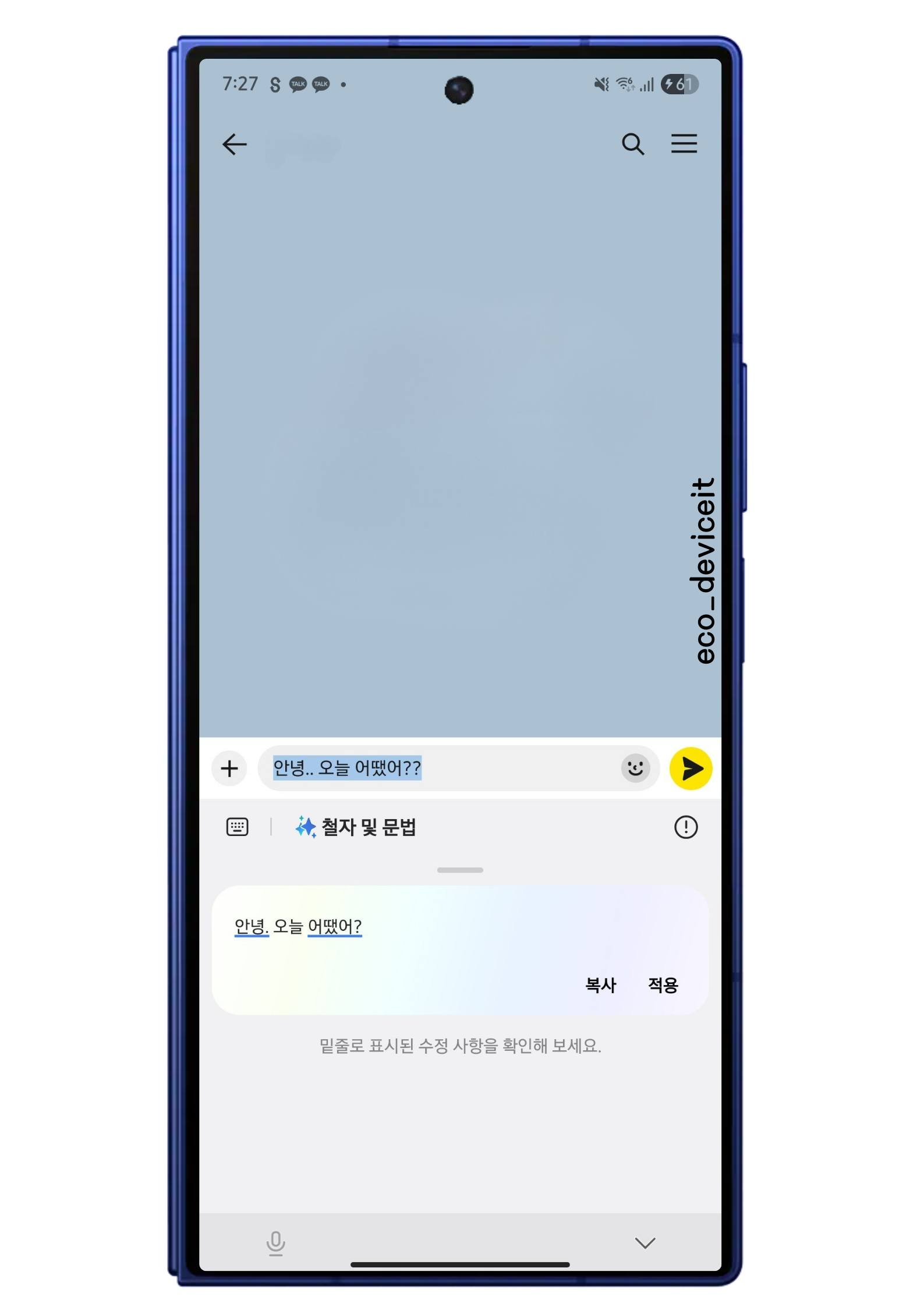 보내기 전에 갤럭시 AI랑 한번 싹~ 교정 받고 가자! 오타 없는 깔끔함은 기본이지 😎
