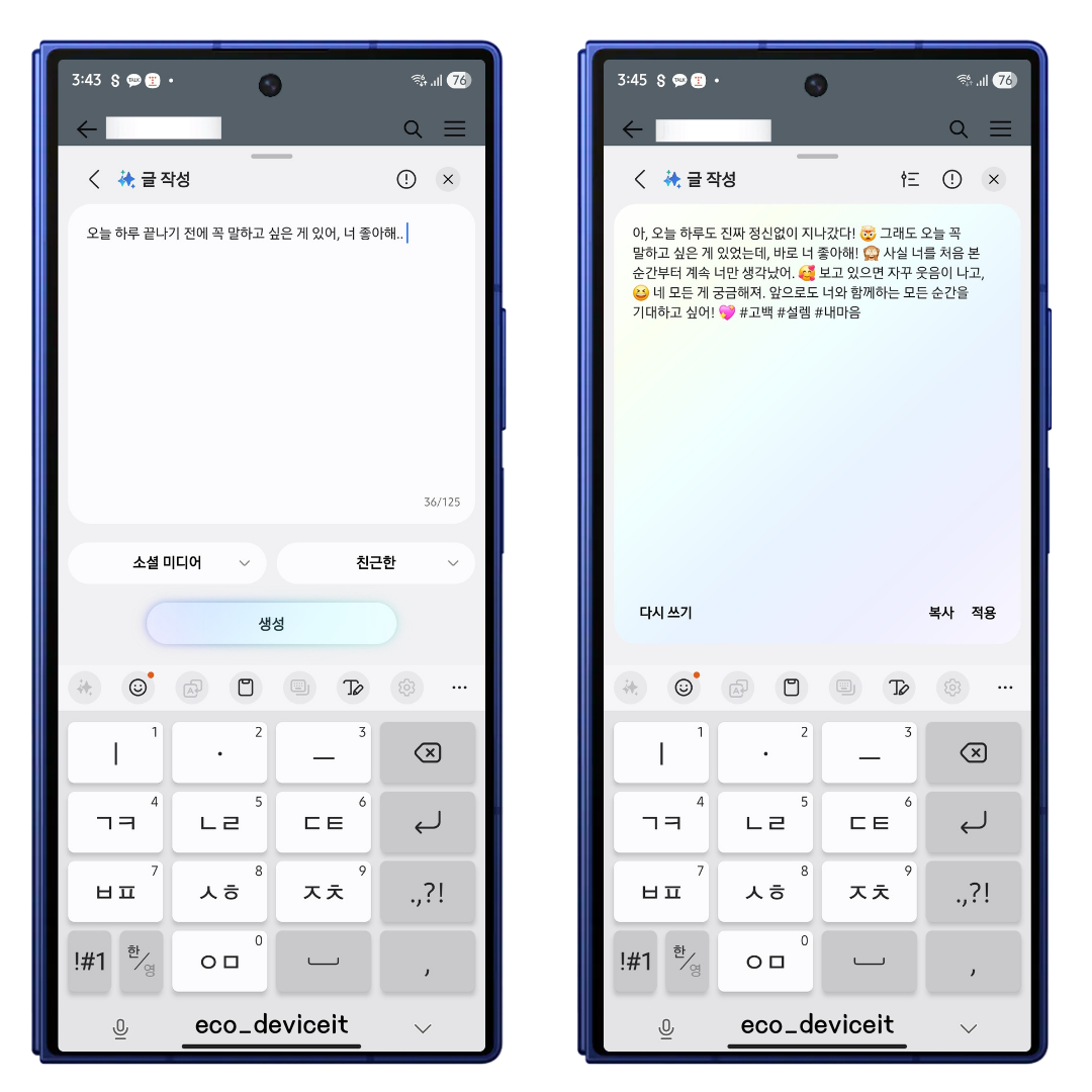 [팁] 갤럭시 Z 폴드7 글쓰기 어시스트 덕분에 내 고백이 갑자기 힙해졌다 💘