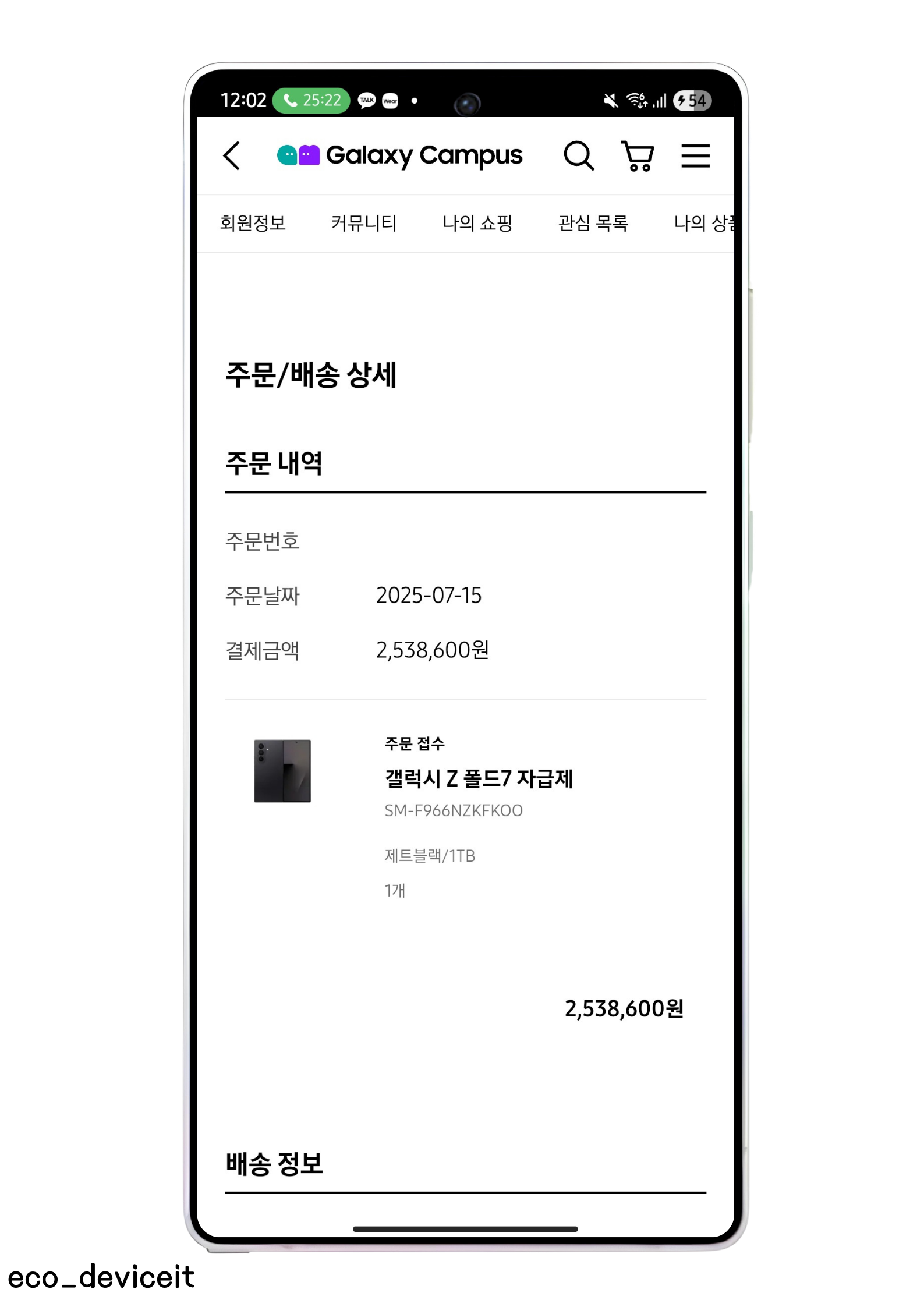 제가 구입한 옵션은 갤럭시 Z 폴드7 제트블랙 색상에 최상 옵션인 1TB 모델을 자급제로 구입했습니다.