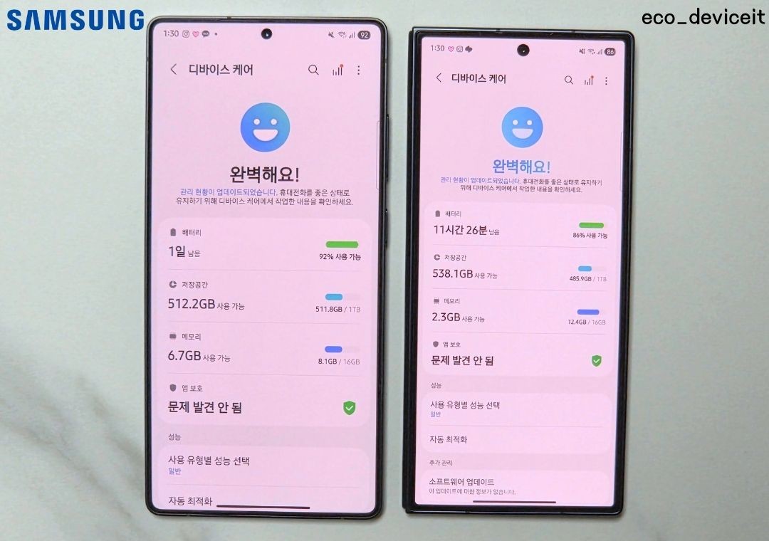 마지막으로 갤럭시 Z 폴드7을 1TB 모델을 구입하면서 드디어 폴드에서 16GB 램을 탑재하였습니다. 폴드는 멀티테스킹에 최적화된 갤럭시다보니 16GB 램의 의미가 있을지도 사용해보고 알려드리겠습니다.