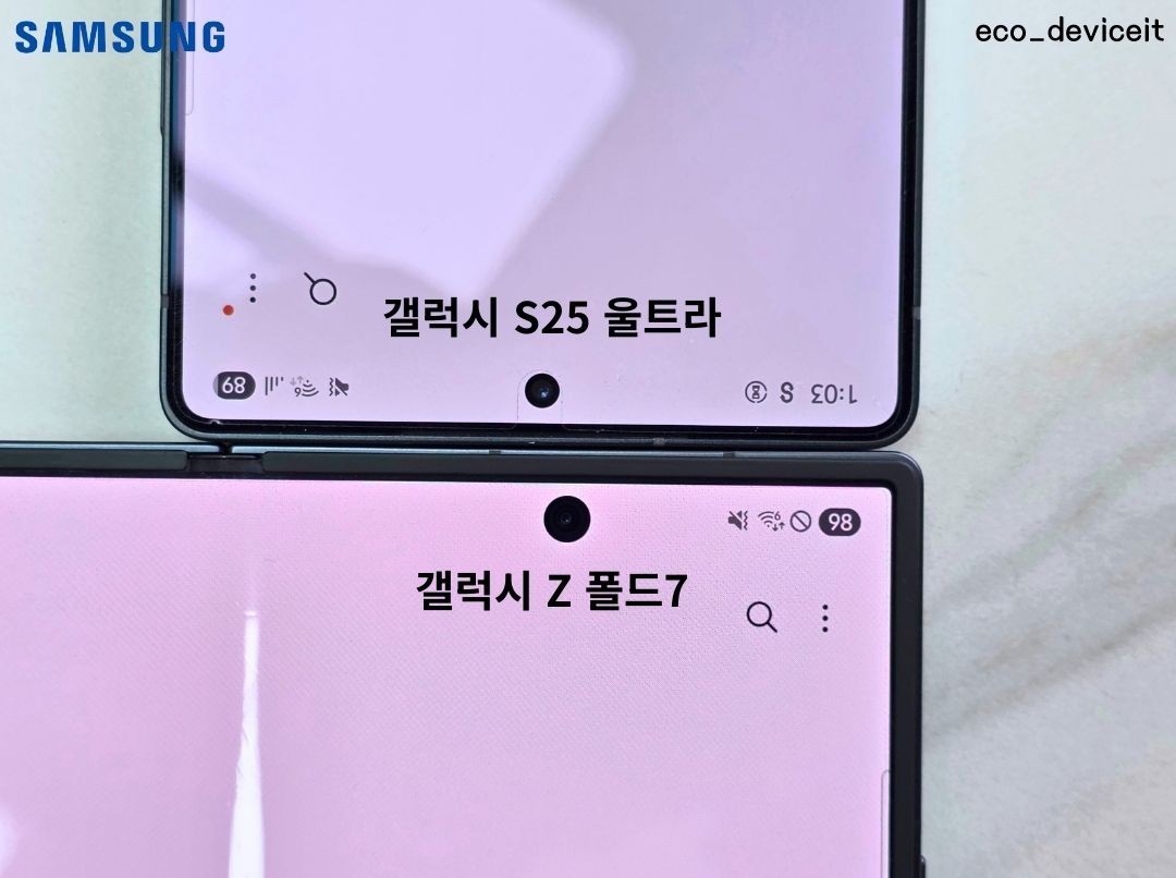 더욱 신기했던건.. ㅋㅋ 제가 폴드7을 사실 자급제보다 좀 더 빨리 받으려고 폴드7을 2대를 구입했습니다. 그래서 메인 전면 카메라와 커버 전면 카메라의 사이즈의 차이도 있었습니다!!