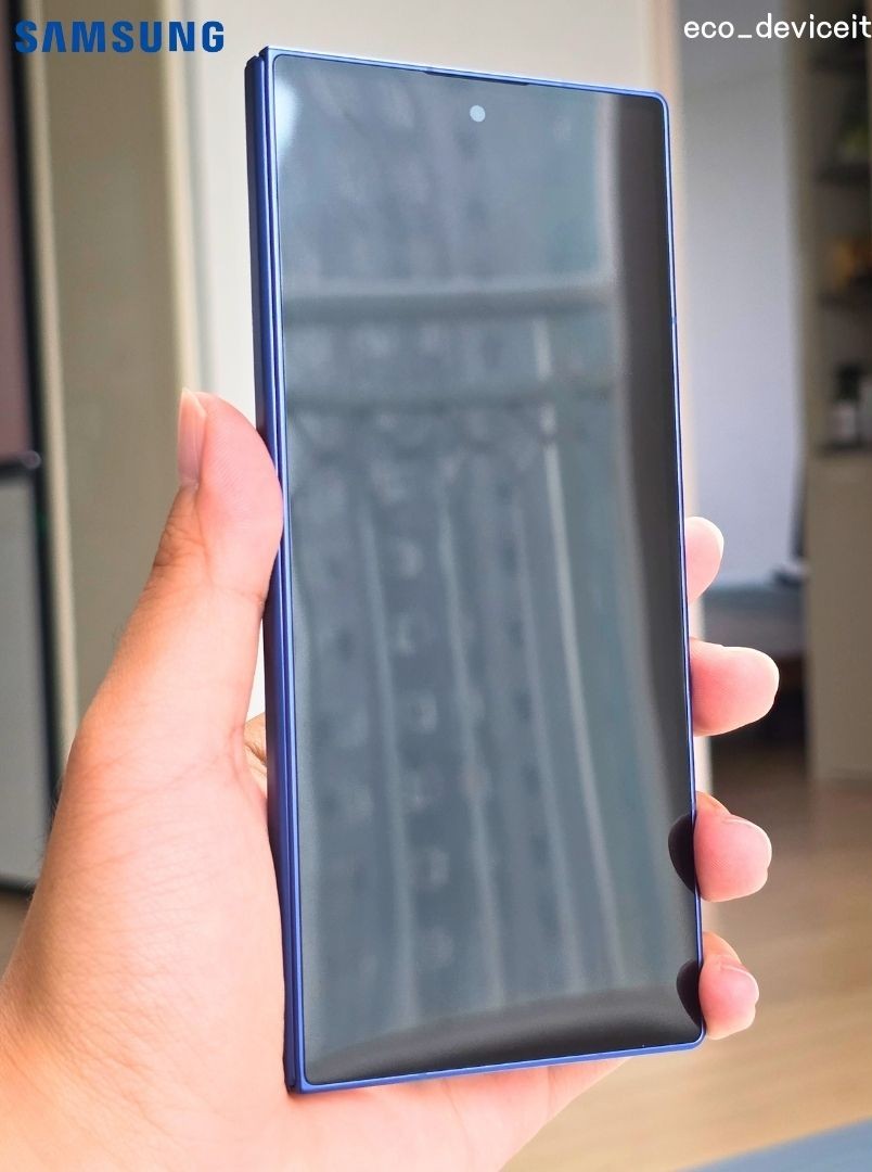 펼쳤을 때의 느낌은 위와 같습니다. 오히려 갤럭시 Z 폴드7은 펼쳤을 때의 디자인이 정말 매력적입니다. 디스플레이와 일체화된 블랙의 디자인이 저에겐 긍정적으로 다가왔습니다.