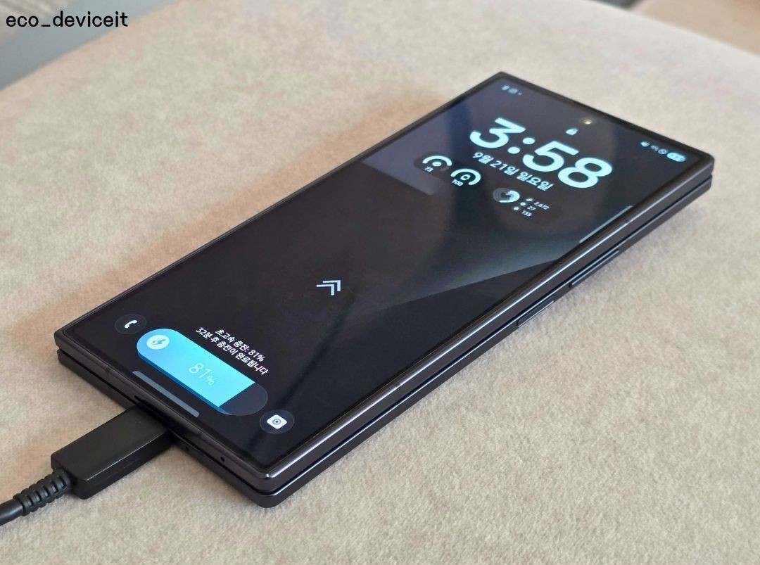 갤럭시 Z 폴드7은 최대 25W 초고속 충전을 지원합니다. 폴드6대비 충전속도와 알고리즘이 개선된 것은 사실이며 체감할 수 있었습니다. 그러나 75%이후엔 충전 출력이 평균 9W로.. 엄청 빠른편은 아니었습니다.
