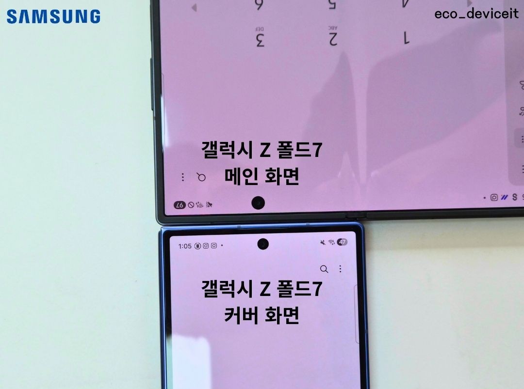 더욱 신기했던건.. ㅋㅋ 제가 폴드7을 사실 자급제보다 좀 더 빨리 받으려고 폴드7을 2대를 구입했습니다. 그래서 메인 전면 카메라와 커버 전면 카메라의 사이즈의 차이도 있었습니다!!
