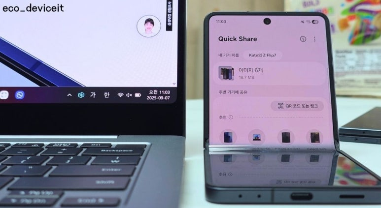 퀵쉐어와 같은 갤럭시 간의 상호작용 기능이 매우 매끄럽고 지금까지 만족하면서 사용했던 갤럭시 에코시스템 기능들중 하나입니다.