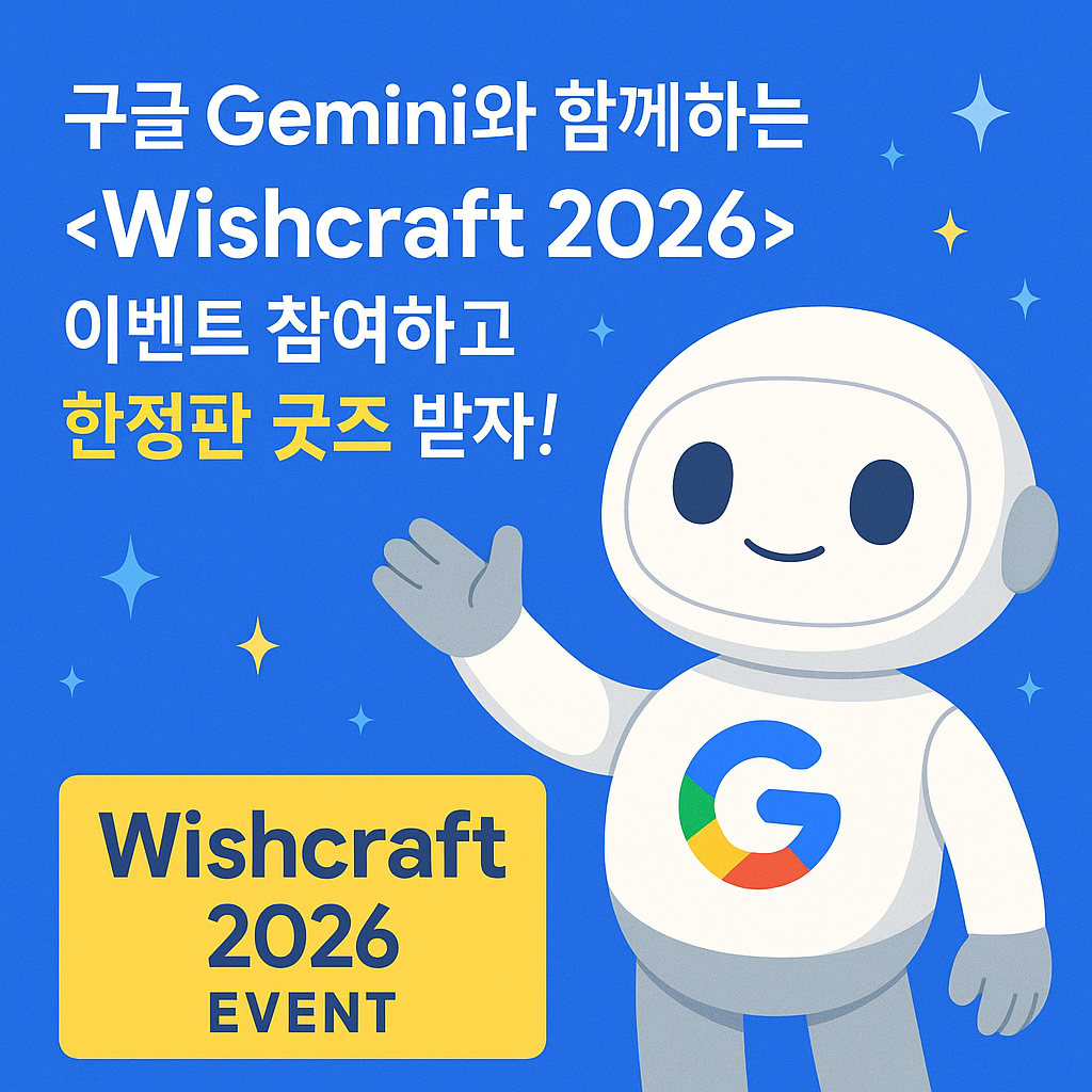 [굿뉴스] 구글 Gemini와 함께하는 <Wishcraft 2026> 이벤트 참여하고 한정판 굿즈 받자! ✨