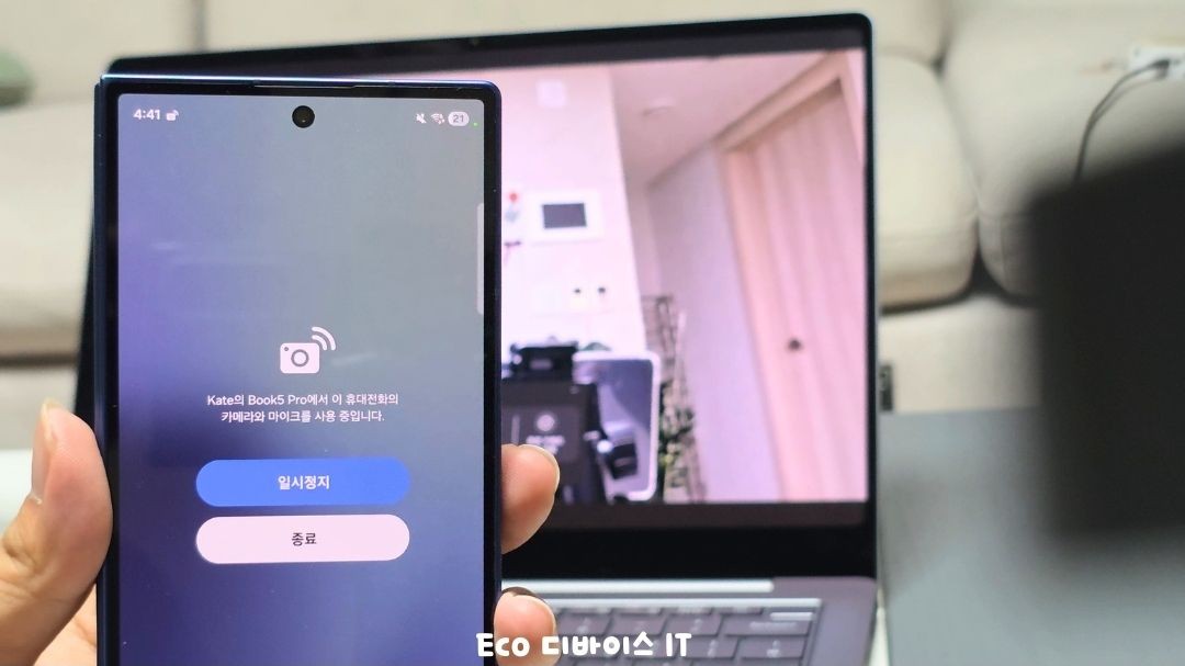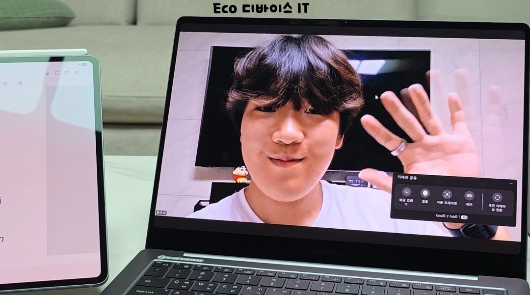 카메라 공유 기능은 갤럭시 스마트폰의 카메라를 주변에 있는 갤럭시 북이나 갤럭시 태블릿에서 웹캠처럼 사용할 수 있는 기능인데요.