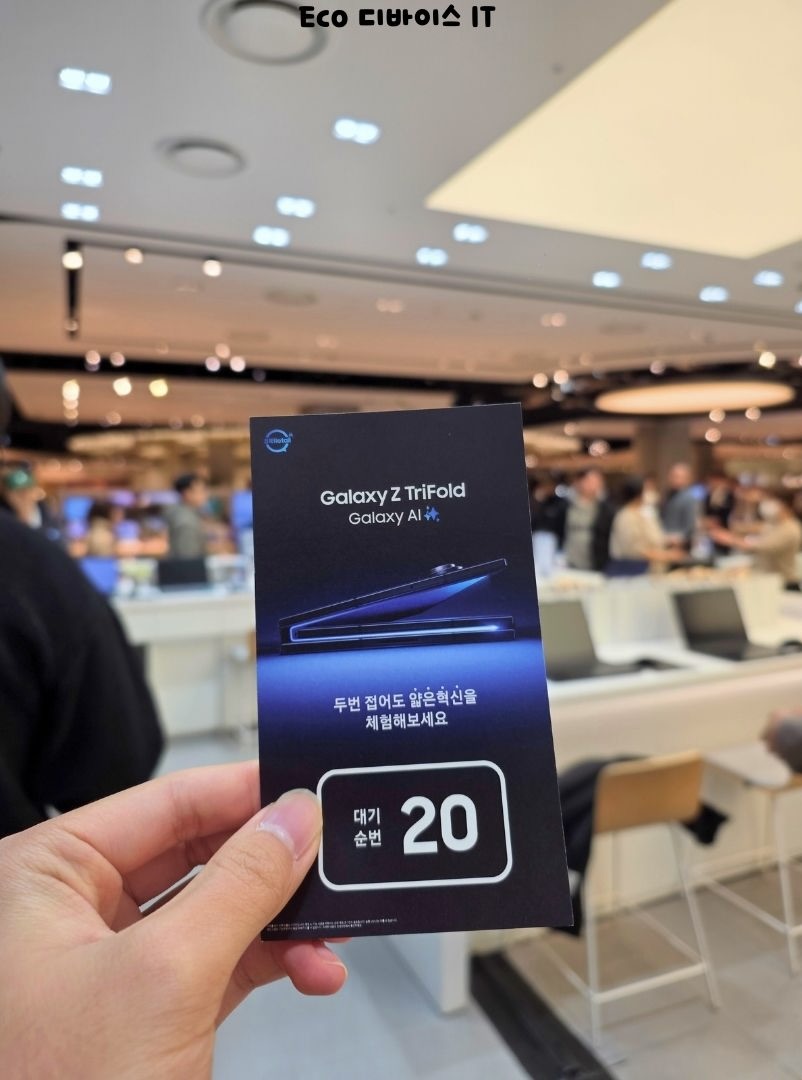 저도.. 12월 12일 첫날, 바로 오픈런을 했는데요. 정말.. 많은 사람들이 있었지만 대기 20번으로 첫번째 물량을 바로 수령할 수 있었습니다. 이제 트라이 폴드를 언빡씽 해보도록 하겠습니다.