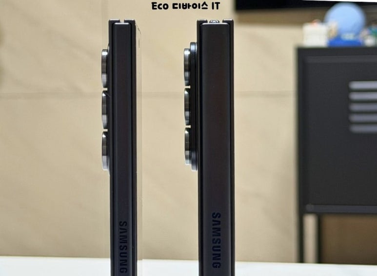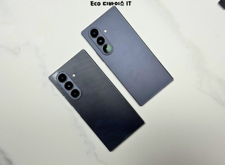 뒷면 디자인을 제가 사용하고 있는 갤럭시 Z 폴드7의 제트 블랙과 비교해봤습니다. 확실히 강화 유리의 제트 블랙과는 또 다른 블랙의 경험을 주더라고요.