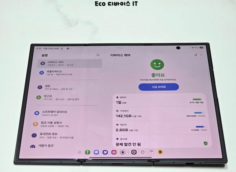 펼쳤을 때, 가로폭이 폴드7보다 더욱 길다보니 회전할 필요 없이, 몰입감 넘치는 컨텐츠 감상을 할 수 있을거 같더라고요!!