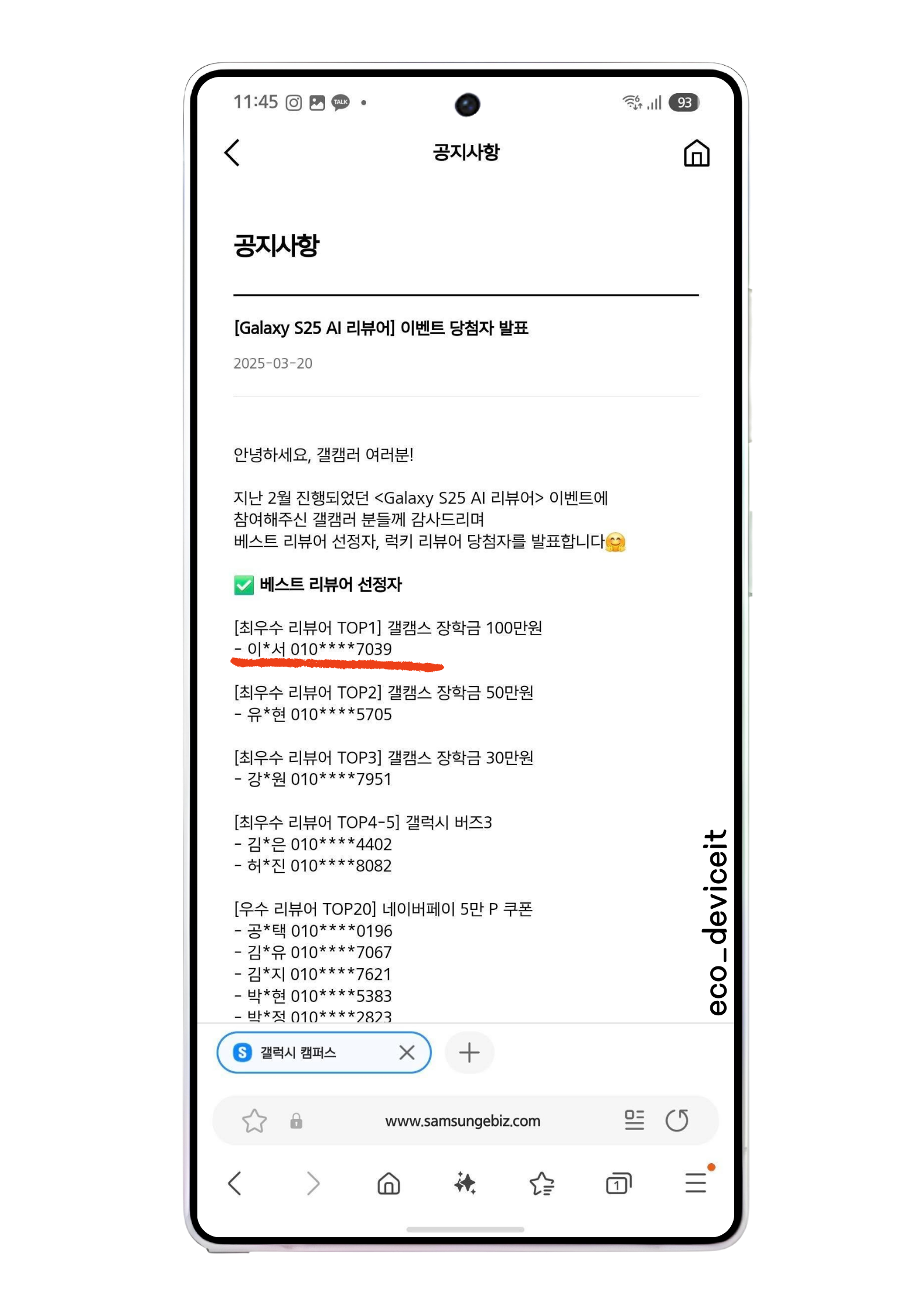 그 이후로는 2023년부터 삼성전자에서 소비자 의견 조사와 다양한 모니터링을 진행하는 삼성멤버스, 그리고 갤럭시 캠퍼스에서도 갤럭시와 함께 활동을 이어갔어요.