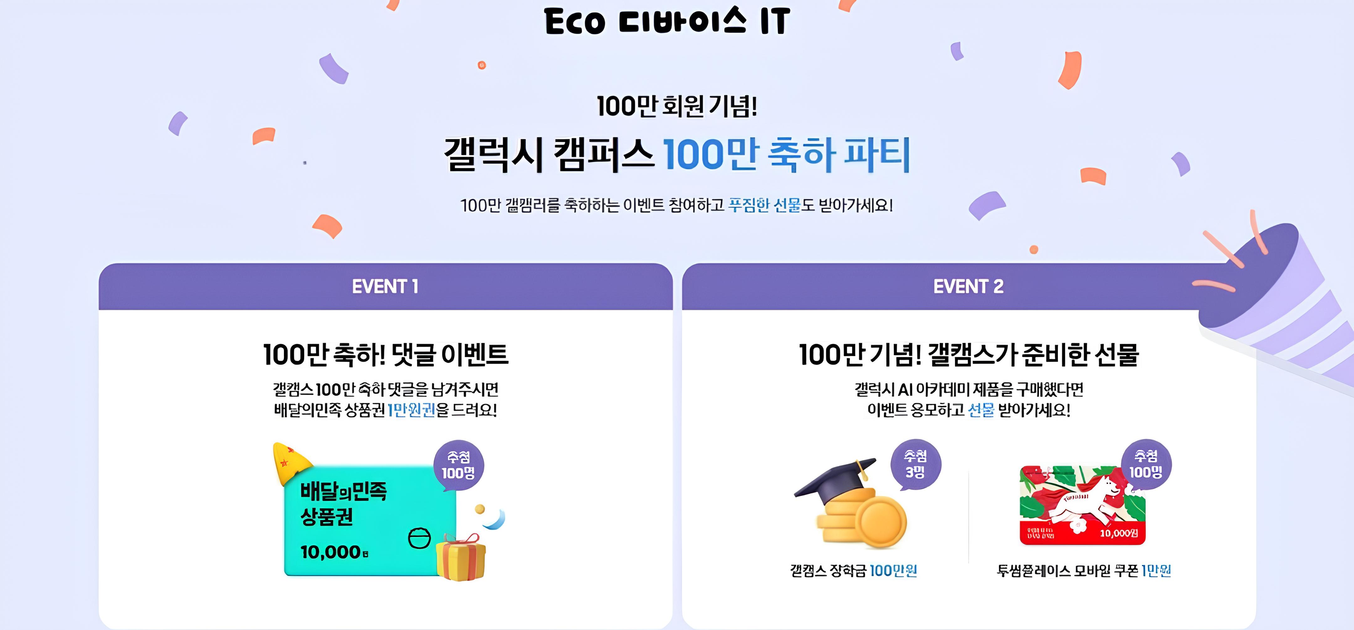 갤캠스 100만 축하 댓글만 남겨도 추첨을 통해 100명에게 배달의민족 상품권 1만 원권을 드려요!!