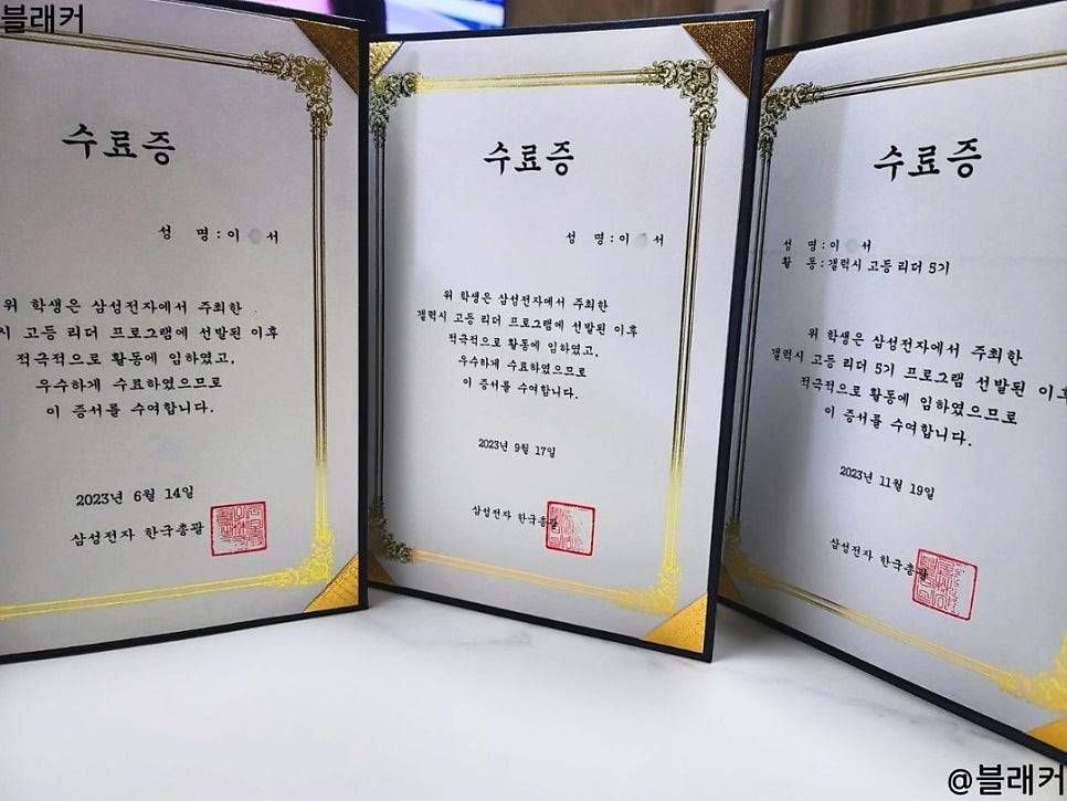 저는 고등학교 때도 삼성전자 한국총괄에서 운영한 갤럭시 고등리더 프로그램을 3기를 시작으로 5기까지 마무리하였는데요!! ㅎㅎ