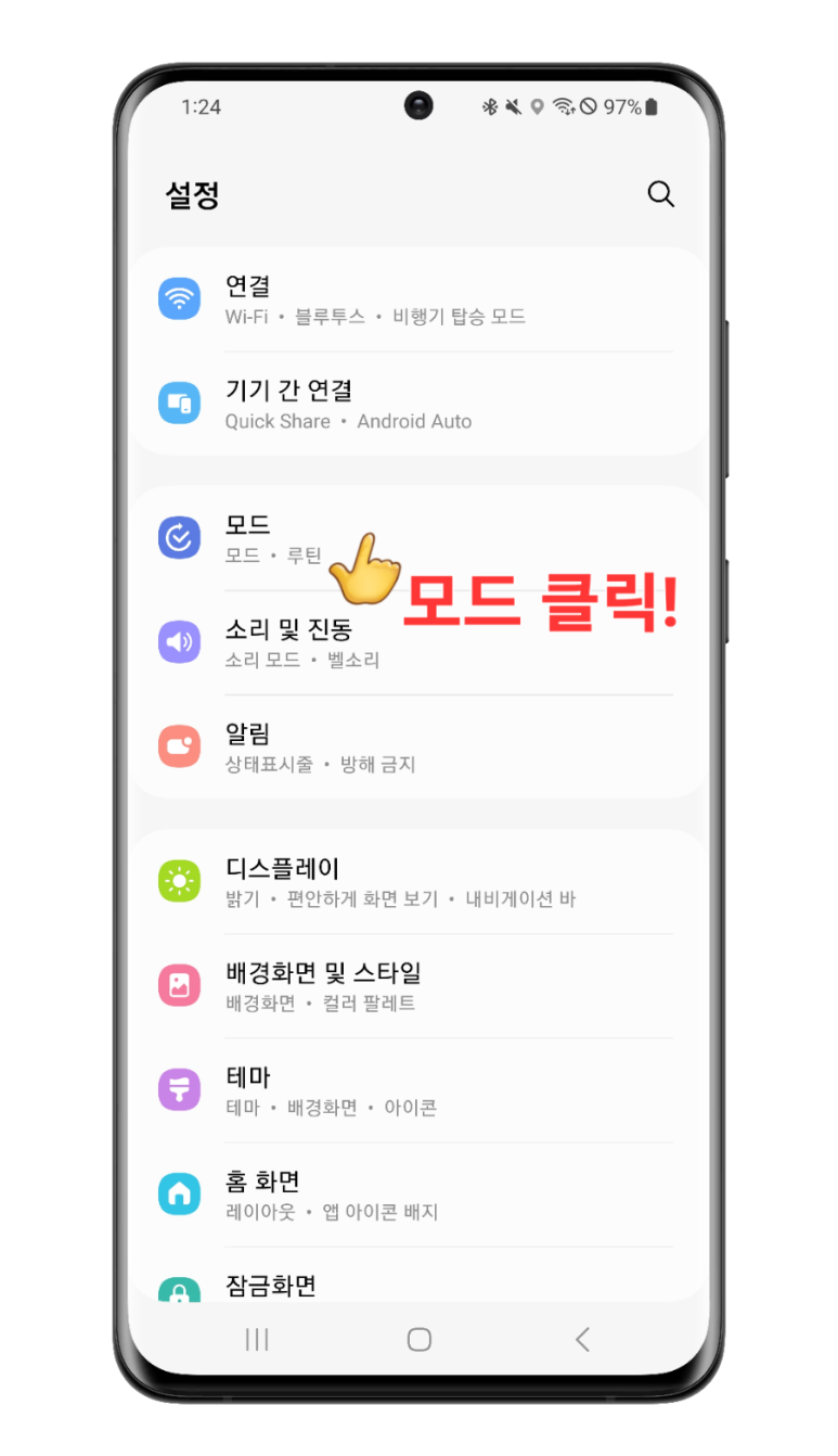 4. 수면모드가 활성화가 되어 있다면 OFF!