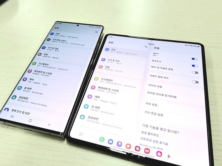 내부디스플레이로 어플을 사용하면서 접어서 바로 커버디스플레이로 끊김없이 연속해서 사용하기!