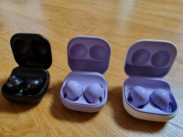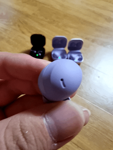 버즈2 프로의 케이스의 마감이 다른 모델들과 다르게 디자인적으로도 그렇고 마감은 동일한데 기존과 다른 무광 처리를 했네요? 기존 버즈프로는 일반적인 무광 마감이라고 하면 버즈2 프로는 고무소재?같은 그런 처리를 했네요. 제가 그라파이트를 선택을 하려했는데 결국엔 보라 퍼플이 끝까지 눈에 띄게 예뻐서 보라퍼플을 선택하게 되었습니다.