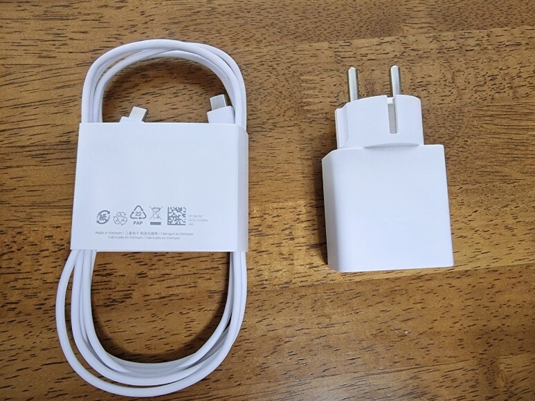 충전기는 삼성전용 65W 초고속 충전기가 들어가 있네요. 이거 하나로 갤럭시 스마트폰, 갤럭시 버즈 심지어 갤럭시 탭까지 초고속 충전을 지원하기 떄문에 저는 최대 45W를 지원하는 갤럭시 탭 S8과 갤럭시 S23울트라가 온다면 저걸로 저도 충전을 할까 합니다..