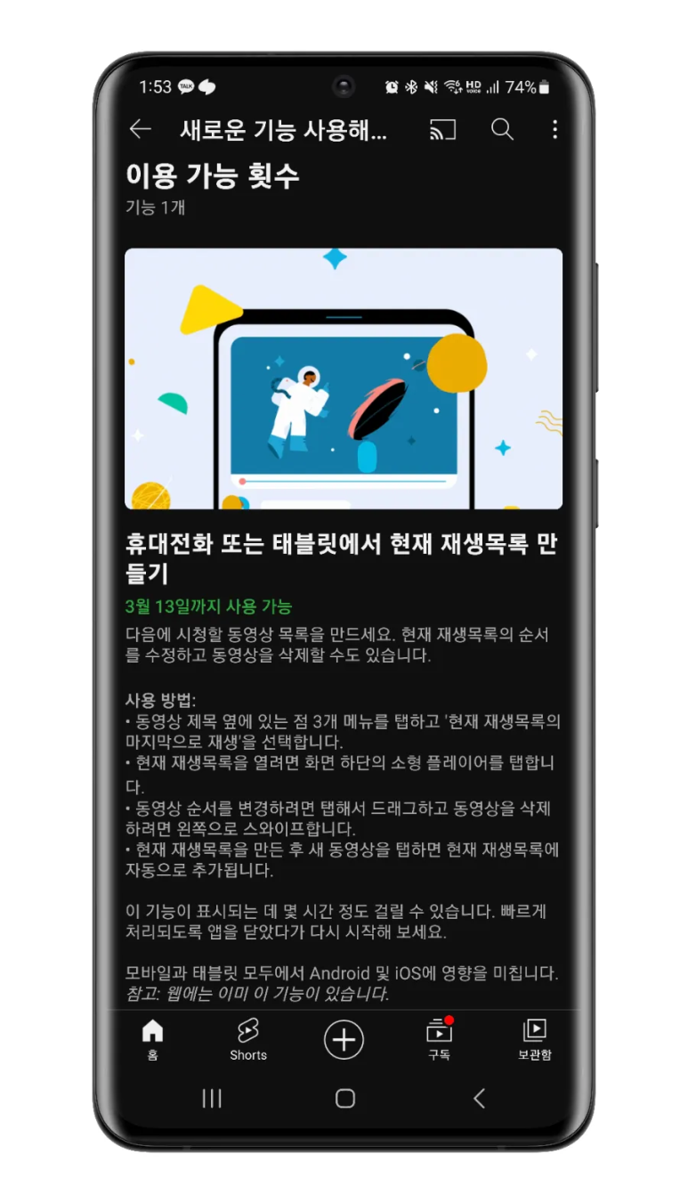 YouTube의 새로운 기능?! 휴대전화 또는 태블릿에서 현재 재생목록 만들기