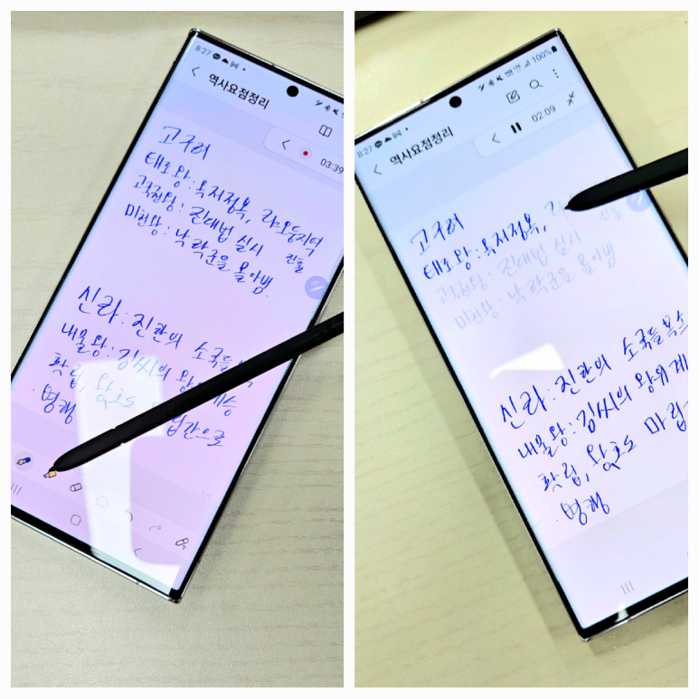 수업시간이나 내가 꼭 메모를 해야할 내용의 경우 음성녹음 기능을 활성화 하면서 삼성노트 필기를 하면 놓쳤던 부분도 다시 돌려서 들을 수 있고, 복습할 때도