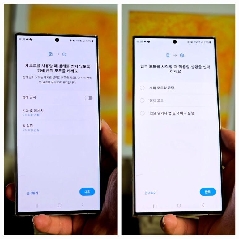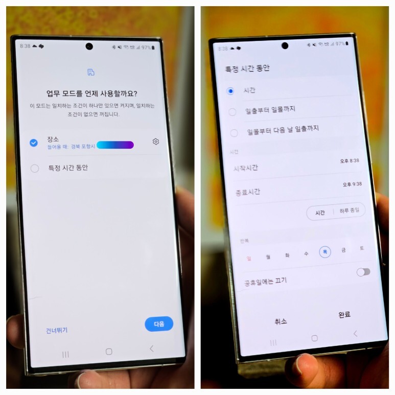 삼성 One UI에서 제공하고 있는 사용자의 조건에 맞추어 제시간에 작동을 할 수 있는 좀 더 세세하게 세팅해줄 수 있는 기능이라고 생각하시면 좋을것 같습니다. 저는 이번에 이 기능으로 수학 공부를 할 때나 또 다른 전공 공부를 할 때 집중력을 높여주는 정말 만족스러운 기능이었습니다.