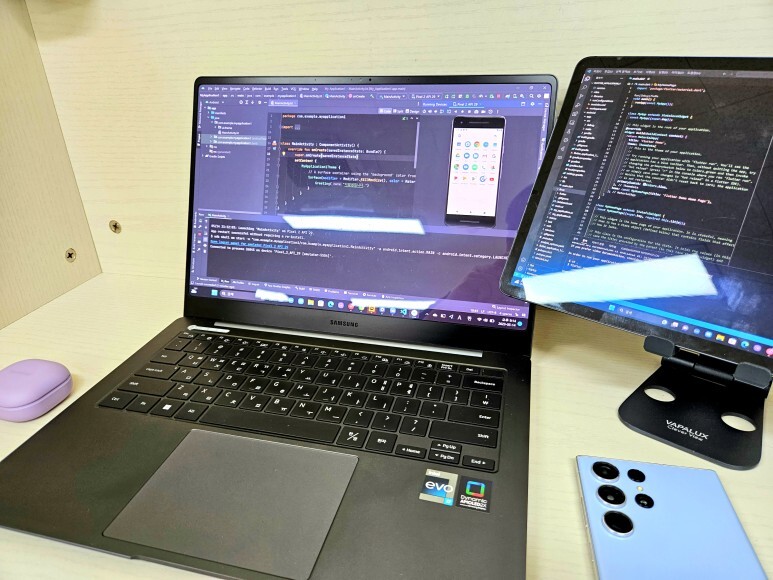 2. 갤럭시 북과 갤럭시 탭을 활용하여 개발 프로젝트를 할 때도 여러 화면으로 나눠서 활용!