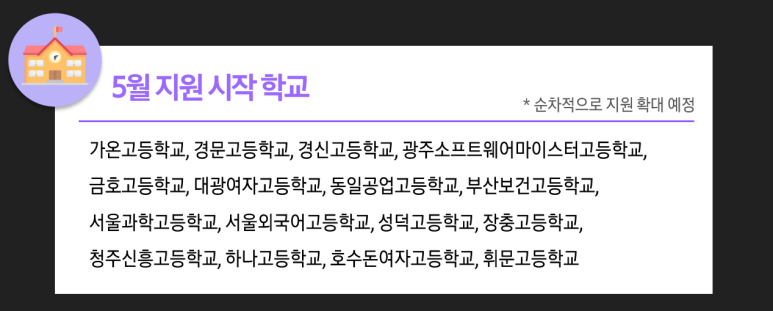 2. 지원가능한 고등학교 (추후 확대 예정)