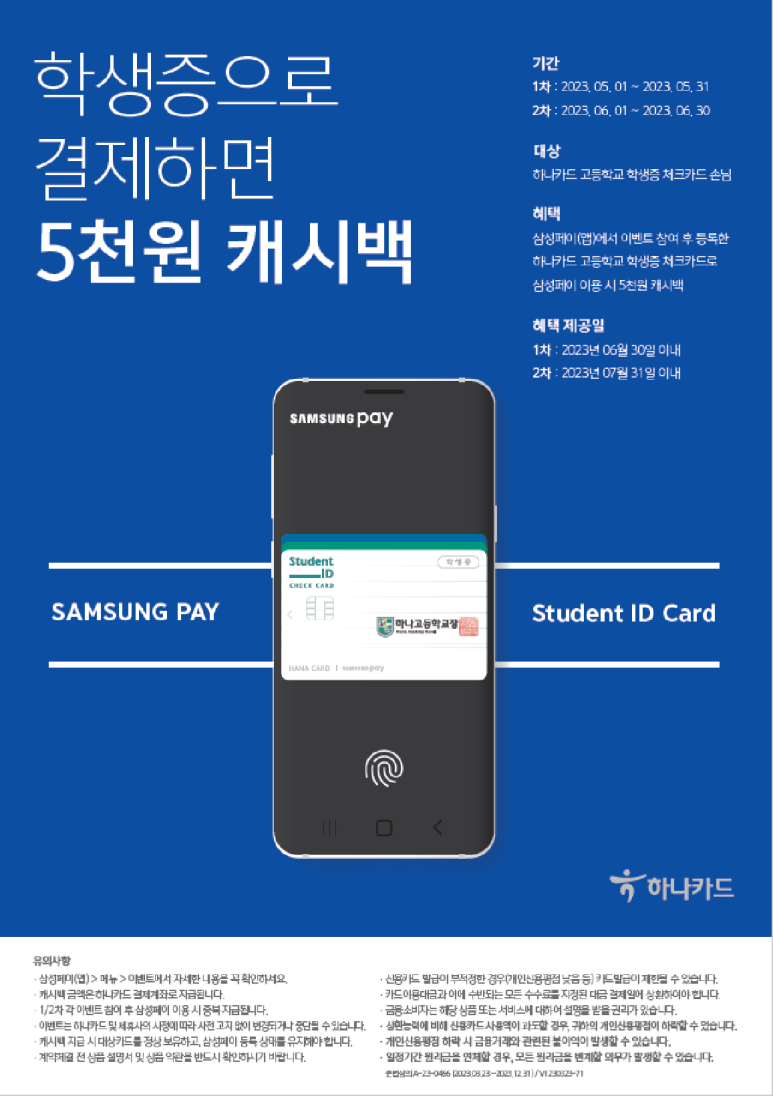 - 학생증으로 결제하면 5천원 캐시백?!