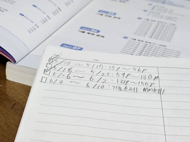 어느정도 훑어봤다 싶으면 1달전부터 자신의 하루 소단원 목표를 세우고 계획을 수립합니다.