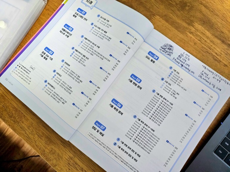 먼저 공부 계획을 세우기 위해 차례를 흁어봅니다. 그리고 이 책의 내용들을 흁어보며 캘린더나 자주쓰는 노트에 계획을
