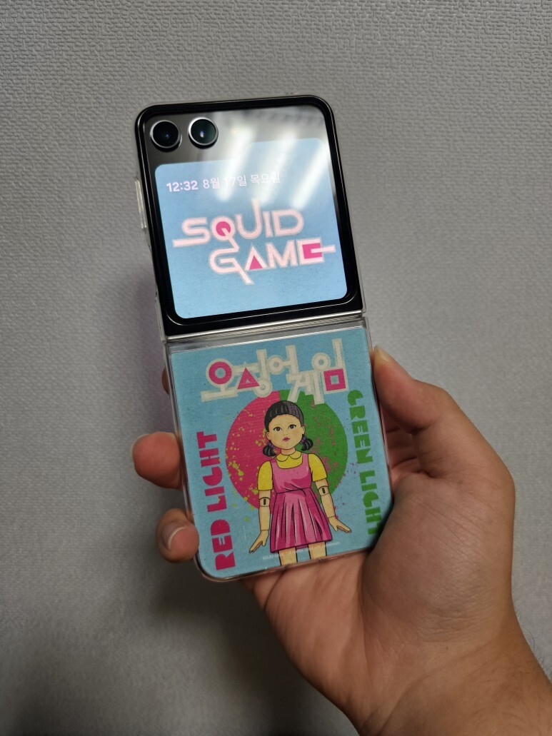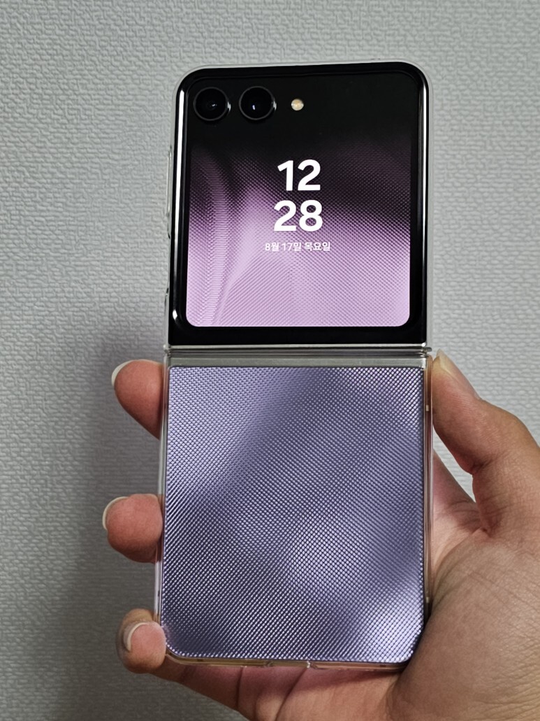 케이스 착용전에는 저걸 굳이..? 라는 생각과 다르게 착용해보니까 후면 색상이 다른데 확실히 폰꾸하는 재미가 엄청날것 같네요! NFC 방식으로 커버 디스플레이의 배경화면도 변경되고 펼칠때 커버디스플레이에서 배경화면이 나타나게 되더라고요. 플립슈트 케이스는 정말 폰꾸하는데 다른 스마트폰도 부럽지않게 자신의 개성을 뽐낼 수 있습니다.