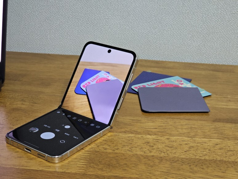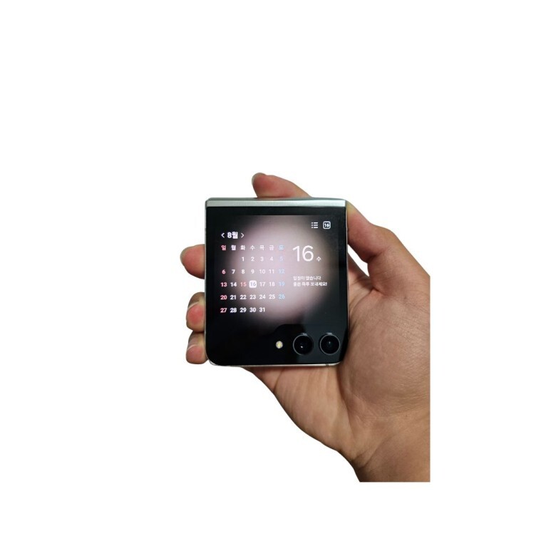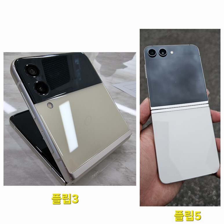 저는 크림 색상으로 대여를 받았습니다. 이 크림색상도 갤럭시 Z 플립3의 크림 색상의 톤과는 색다른 톤으로 되어있습니다. 플립3의 크림 색상은 노란색이 많이 첨가되어 있다면 플립5의 크림 색상은 빛에 따라 화이트로 보이다가 크림색으로 보이다가 독특하더라고요!