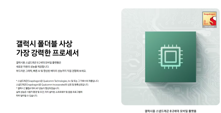 칩셋은 스냅드래곤 8 2세대 For Galaxy가 탑재되었습니다. 상반기때 갤럭시 S23시리즈의 성능을 봤을때 성능이야 확실하게 개선되었습니다. 그리고 원랜 플립과 폴드가 같이 출시하면 플립이 폴드의 클럭이 낮게 출시했습니다. 이번에는 폴드와 동급의 클럭을 낼 수 있는거에요! 세팅하면서 느낀거지만 제가 대여받은 플립5는 플립4에 비해 체감 발열은 줄었습니다. 하지만 플립의 구조 특성상 발열처리의 한계가 있다보니 이건 롱턴 사용기에서 성능 테스트까지 하여 알려드리도록 하겠습니다.