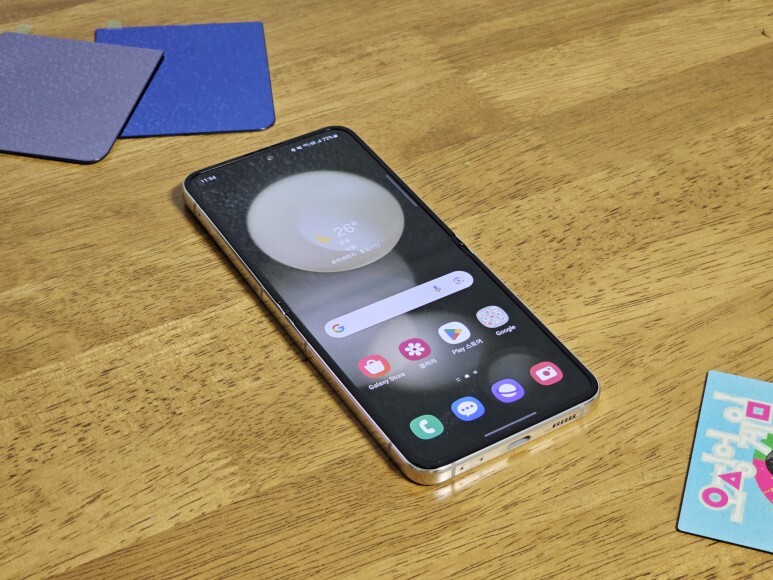 이번 플립5의 디스플레이는 3.4인치의 720 x 748의 해상도도 높아져 시원시원한 맛이 있습니다. 전작인 플립4는 1.9인치의 디스플레이고 해상도도 260 x 512로 크기도 1세대 비하면 커지긴 했는데 사용성 부분에서 애매했습니다. 사실적으로 말하면 플립4까진 폰꾸도 하고 삼성페이도 되는것까진 인상적이었지만 외부디스플레이가 베젤도 두껍고 실질적으로 많이 활용도가 떨어졌습니다. 반면 이번 플립5는 외부 디스플레의 크기를 대폭 확장하면서 사용성부분까지 개선을 시켰습니다. 그래서 간단한 작업은 정말 펼칠 필요없이 플랙스 윈도우의 위젯을 유용하게 활용할 수 있습니다.