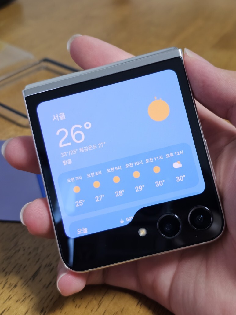 저는 주로 삼성페이 결제, 음악 컨트롤, 갤럭시 버즈 컨트롤, 날씨, 삼성헬스 등을 사용하고 있습니다. 디스플레이가 확장되니 플립도 이제 커버화면을 제대로 활용할 수 있어요.