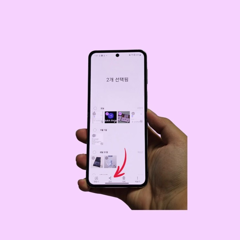- Quick Share를 사용하여 가장 내가 저장한 지인명의로 클릭!