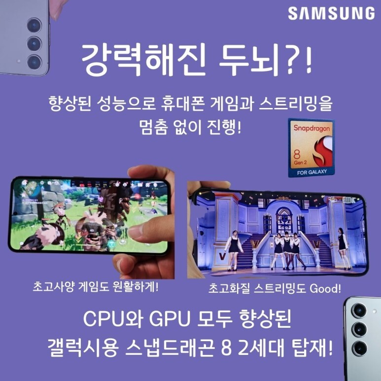 이로 인하여 고성능 게임 플레이, 숏폼 편집을 할 때도 핸드폰이 정말 매끄럽게 동작하여 " 쿄오오오오오오 이게 갤럭시지!!" 라는 소리가 나올 정도로 정말 만족스러웠습니다.