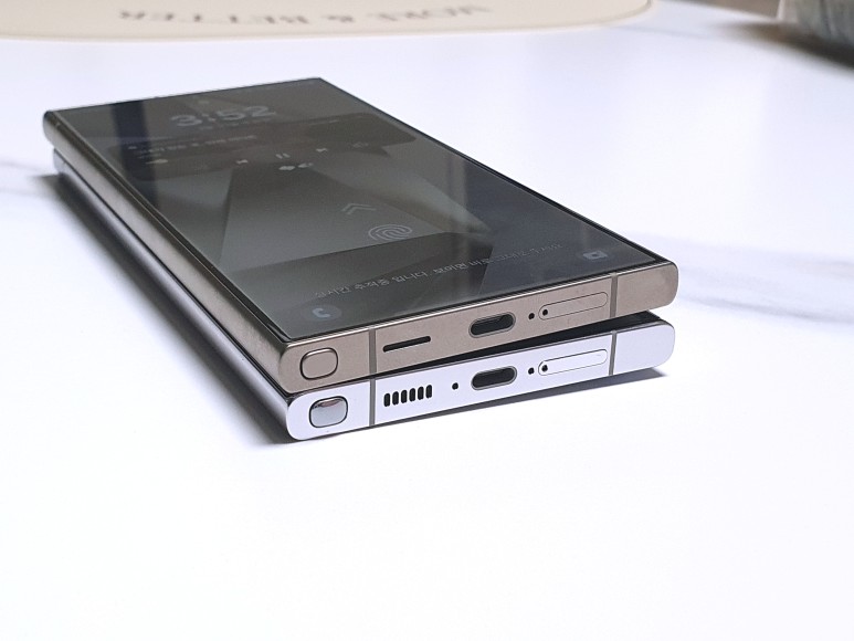 전작은 USB 타입 C 왼쪽에 통화용 1차 마이크가 있었는데 S24에서는 모두 1차와 2차 마이크의 위치가 상단으로 변경되었습니다.