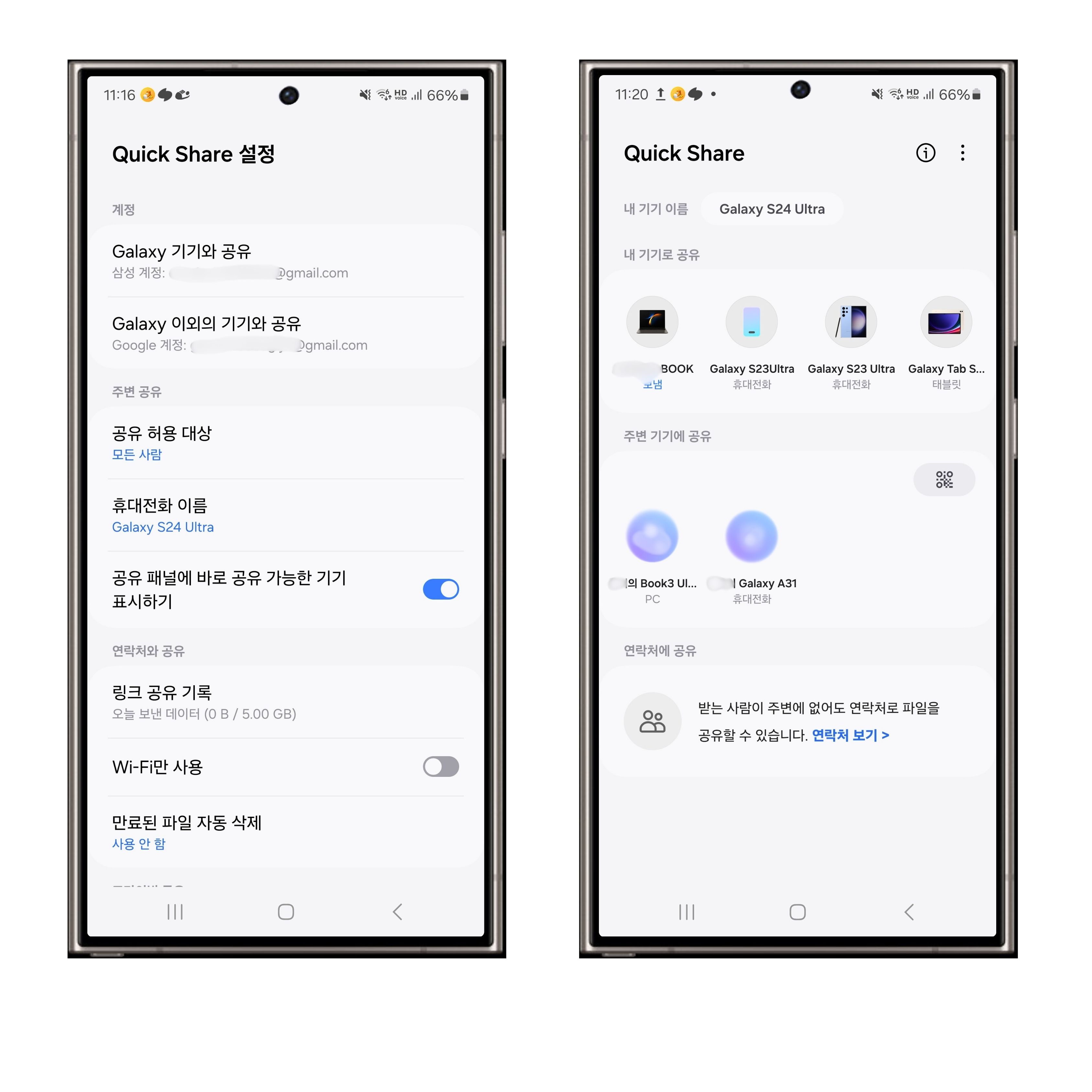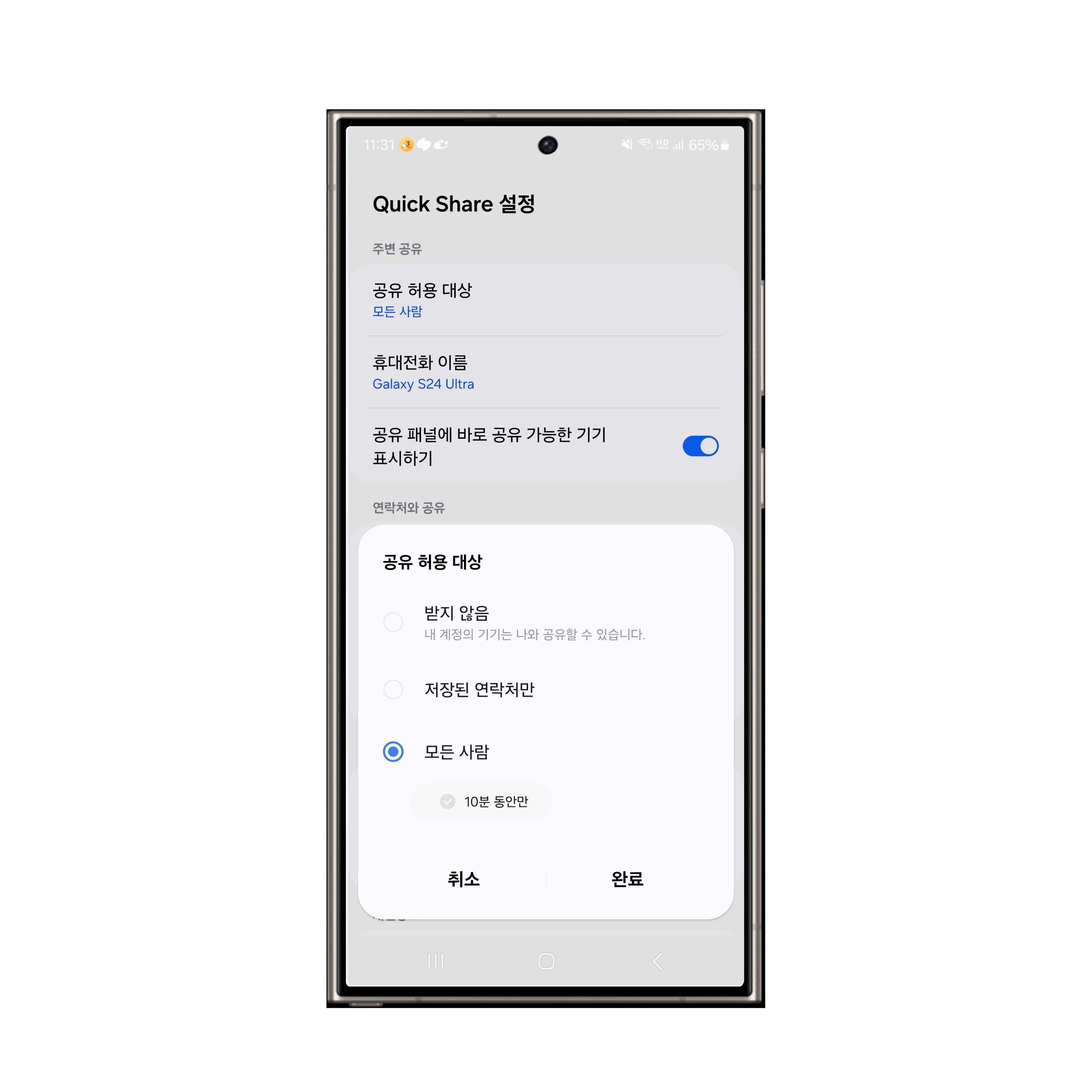 구글과의 협력으로 퀵쉐어와 Nearby Share 기능이 통합되었습니다. 그래서 이제 퀵쉐어로 다른 안드로이드 스마트폰과도 쉽게 파일을 공유할 수 있게 업그레이드 되었습니다.