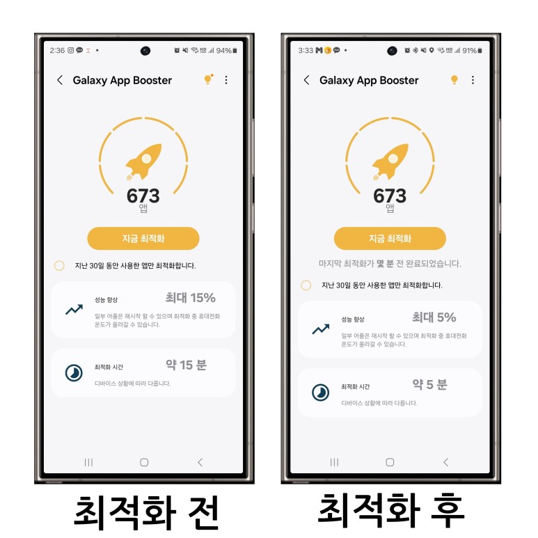 최적화를 진행한 갤럭시와 하지 않은 갤럭시를 구별하는 방법