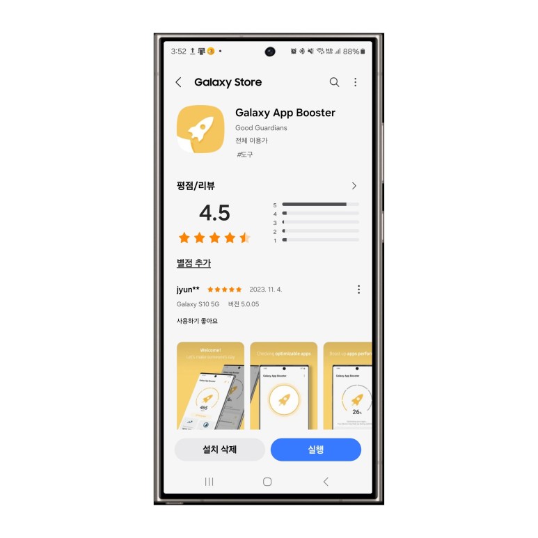 갤럭시 스마트폰 앱 실행 파일을 최적화하여 앱의 실행 속도나 성능을 향상시킬 수 있는 앱입니다. 해당 앱은 삼성전자에서 개발하여 믿고 사용하실 수 있습니다.
