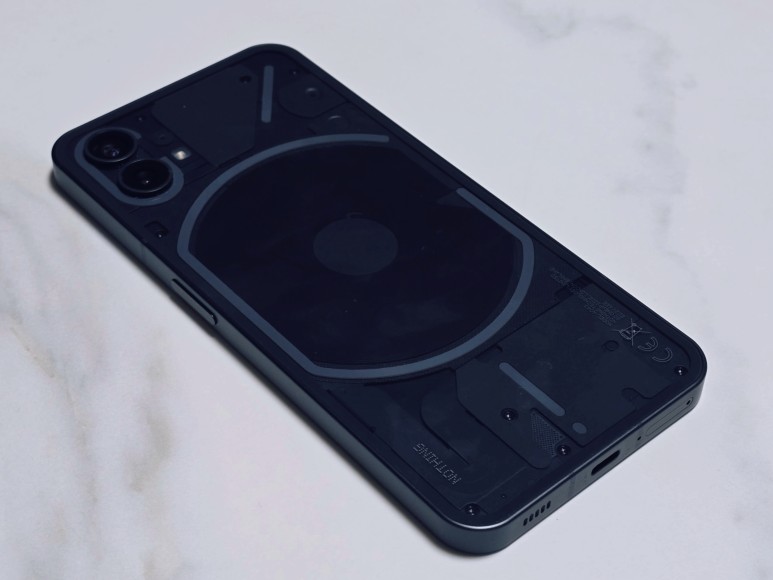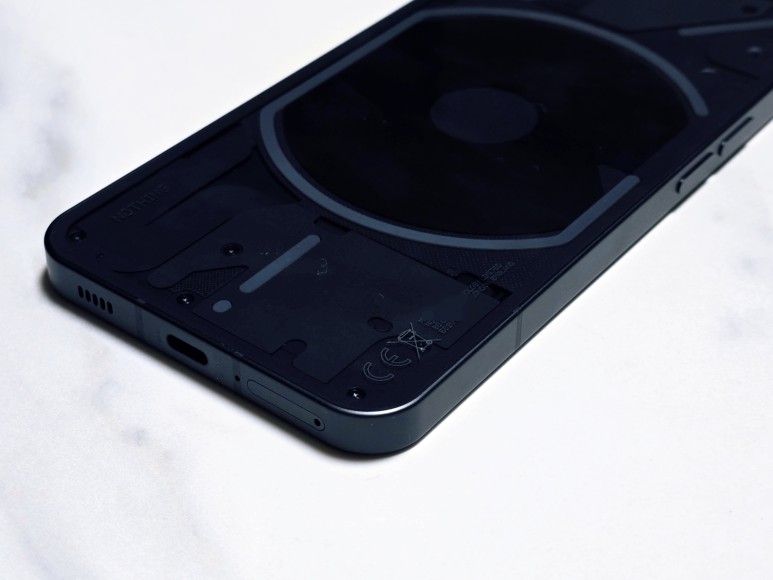 후면엔 무선 충전 코일과 글리프 인터페이(Glyph Interface)를 위한 LED가 보입니다.