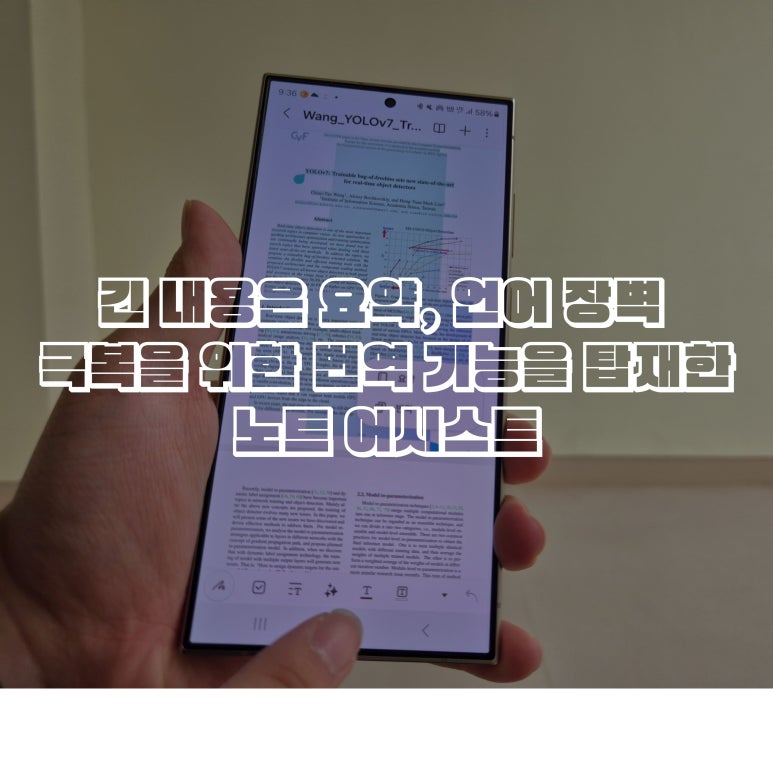 삼성 노트에서도 온디바이스 AI를 활용한 번역 및 요약 기능이 추가되었습니다.