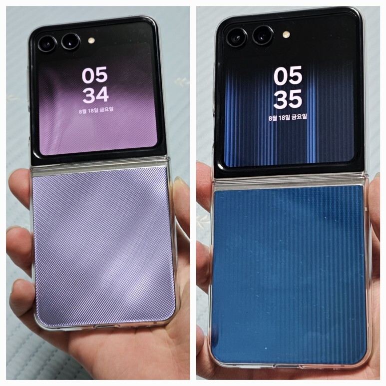 갤럭시 Z 플립 5가 출시되면서 사전예약 사은품으로 제공해주는 케이스이죠. 이번에 새롭게 출시한 정품 케이스 입니다. 이걸로 플렉스 윈도우를 꾸밀 수 있죠. 기본적으로 블루와 퍼플색을 제공을 하고 있습니다.