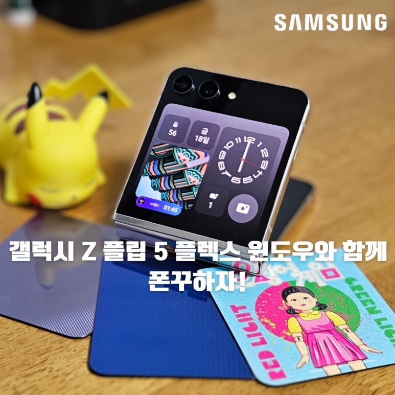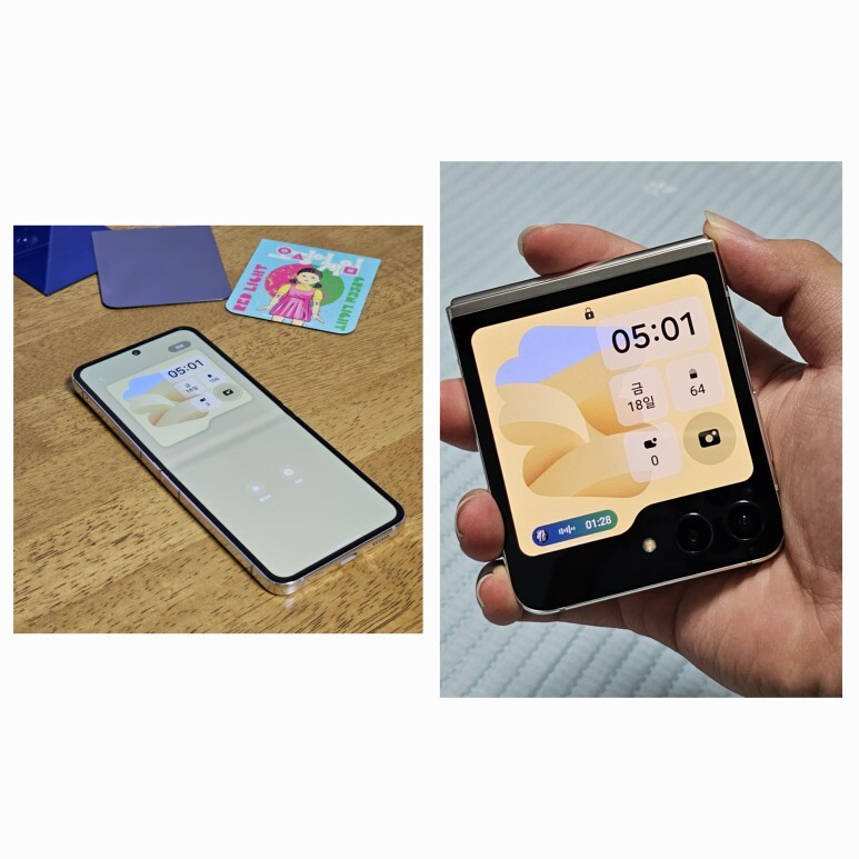 저는 최근 삼성전자로부터 갤럭시 Z 플립 5 모델을 대여 받아서 실사용중에 있는데요! 플립하면 이제 폰꾸잖아요! 삼성은 갤럭시 Z 플립3 때부터 다양한 케이스와 관련한 이미지들과 AOD를 지원하여 많은 인기를 끌었습니다. 그래서 오늘은 갤럭시 Z 플립 5의 개성을 살릴 수 있는 플렉스 윈도우로 폰꾸하는 소개를 해보도록 하겠습니다.